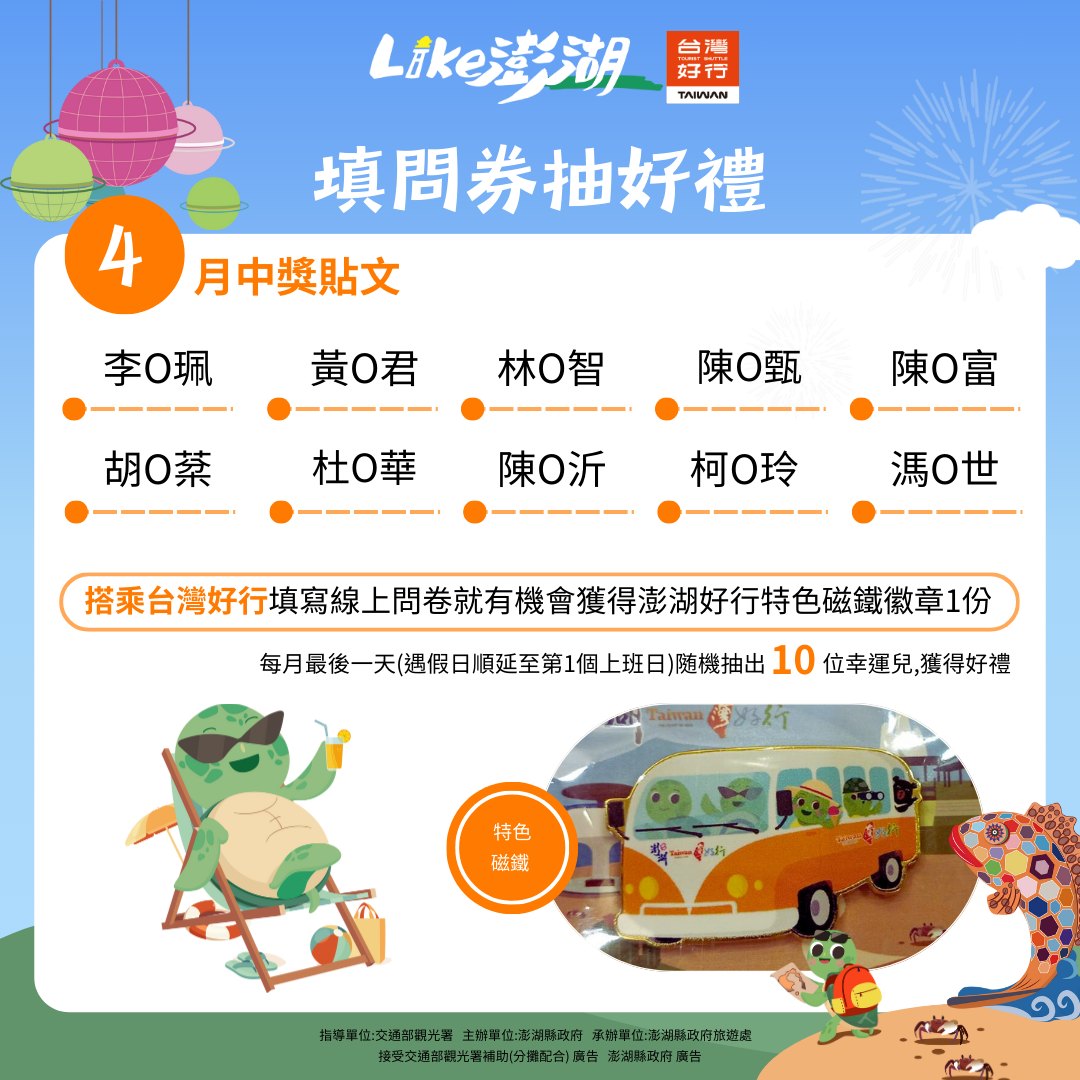 【最新消息】114年4月問券中獎名單公告